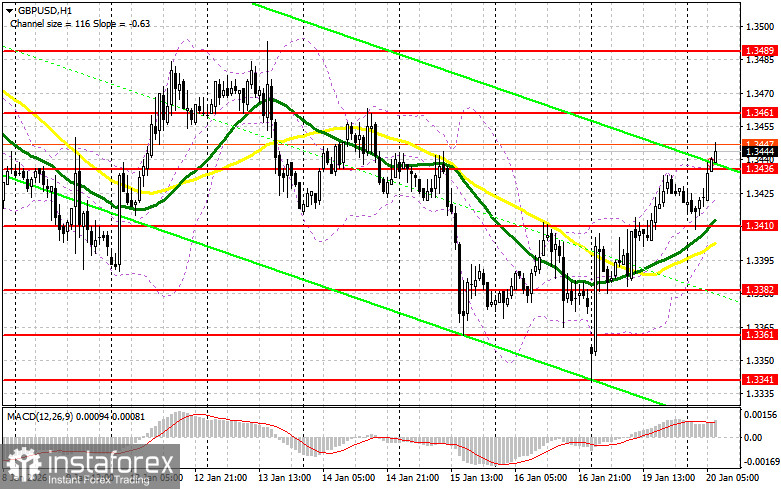 Сегодня в первой половине дня ожидается достаточно много важной статистики. Все начнется с отчетов по изменению числа заявлений на получение пособий по безработице в Великобритании, уровня безработицы и уровня среднего заработка, а закончится выступлением губернатора Банка Англии Эндрю Бэйли. Его речь может касаться будущей политики Банка Англии, так что всплеск волатильности пары GBP/USD будет обеспечен. В случае голубиной позиции пара GBP/USD может скорректироваться, чем и собираюсь воспользоваться. Формирование ложного пробоя в районе новой поддержки 1.3436 станет поводом на открытие длинных позиции с целью возврата GBP/USD к сопротивлению 1.3461. Прорыв и обратный тест сверху вниз этого диапазона дадут шанс на дальнейшее восстановление GBP/USD, что приведет к новым покупкам и позволит добраться до 1.3489. В случае выхода выше и этого диапазона можно говорить о рывке к 1.3514, где собираюсь фиксировать прибыль. При сценарии падения GBP/USD и отсутствия покупателей в районе уровня 1.3436, медведи попытаются добиться более крупной распродажи. Это также приведет к снижению в район следующей поддержки 1.3410. Формирование там ложного пробоя будет подходящим вариантом по входу в рынок. Открывать длинные позиции по GBP/USD сразу на отскок можно от 1.3382 с целью коррекции в 30-35 пунктов внутри дня.