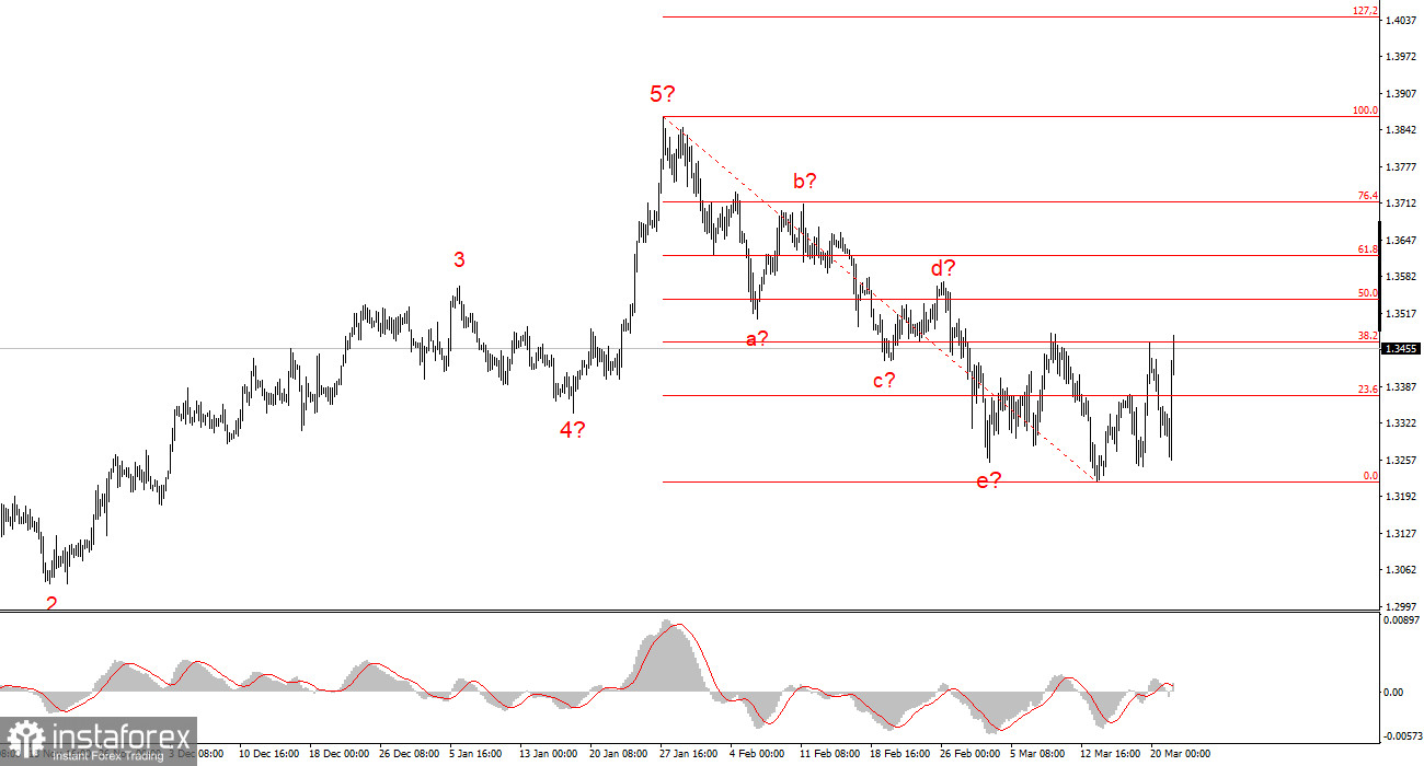 Волновая картина инструмента GBP/USD приобрела очень сложный, нечитаемый вид. Теперь мы видим на графиках семиволновую понижательную структуру, которая, безусловно, таковой не является. Вероятнее всего, внутри одной из волн присутствует удлинение или усложнение. Однако понятнее от этого волновая разметка не становится. Если волновая картина один раз усложнилась до нечитаемого вида, то может усложниться и еще несколько раз. Поэтому я считаю, что сейчас нужно опираться на волновую разметку инструмента EUR/USD, которая выглядит гораздо более понятно. Поэтому от британца я также жду повышения с целями, расположенными около отметок 1,3541 и 1,3620. Также не следует забывать о факторе геополитики, который в любой момент может отправить оба инструмента в новое падение.