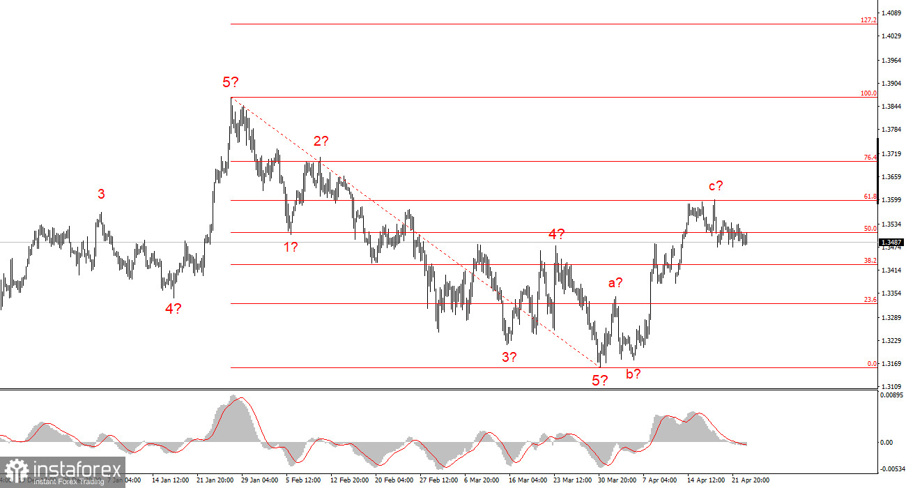 Волновая картина инструмента GBP/USD приобрела с течением времени более понятный вид, как я и предполагал. Теперь мы видим на графиках четкую трехволновую восходящую структуру, которая уже может быть завершена. Если это действительно так, то нас ждет построение минимум одной нисходящей волны(предположительно d). Повышательный участок тренда может принять пятиволновой вид, но для этого нужно, чтобы конфликт на Ближнем Востоке затухал, а не разгорался заново. Поэтому базовый сценарий на ближайшие дни – снижение в область 34-й фигуры или немного ниже. Дальше все будет опять зависеть от геополитических факторов.