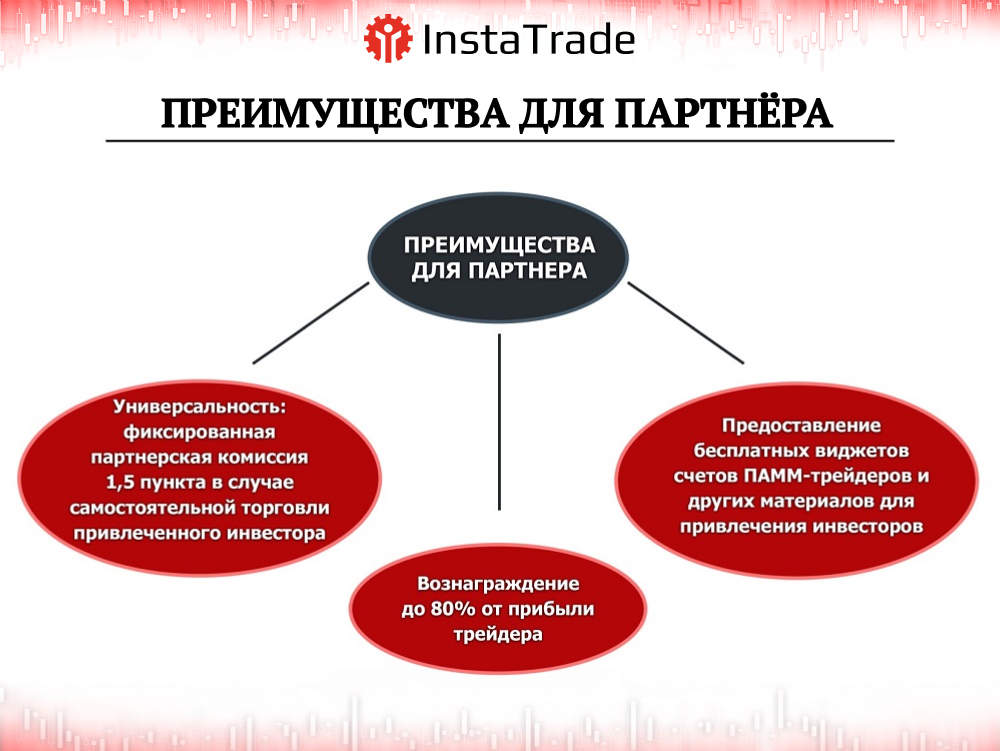 | 2 | Savdo hisob-varag'ini olganingizdan so'ng mijoz kabinetida avtorizatsiyadan o'ting va majioz kabineti chap menyusidagi "PAMM-tizimi" bandini chaqiring. Keyin, Sizga kim bo'lishni istaysiz deb taklif beriladi - investor yoki treyder (ikkita hisob-varag'i ochish ham mumkin, biri - PAMM-Investor, ikkinchisi - PAMM-Treyder) uchun, aloqa ma'lumotlarini to'ldiring, ular Sizning investorlaringizga yoki boshqaruvchi treyderlarga Siz bilan aloqa qilish uchun xabar qilinadi. Aloqa qilish axboroti ishonchli himoya qilgan va Sizning hisob-varag'ingizga mablag'larni haqiqatan ham investitsiya qilgan yoki Sizdan investitsiya olganlargagina akslanadi. |